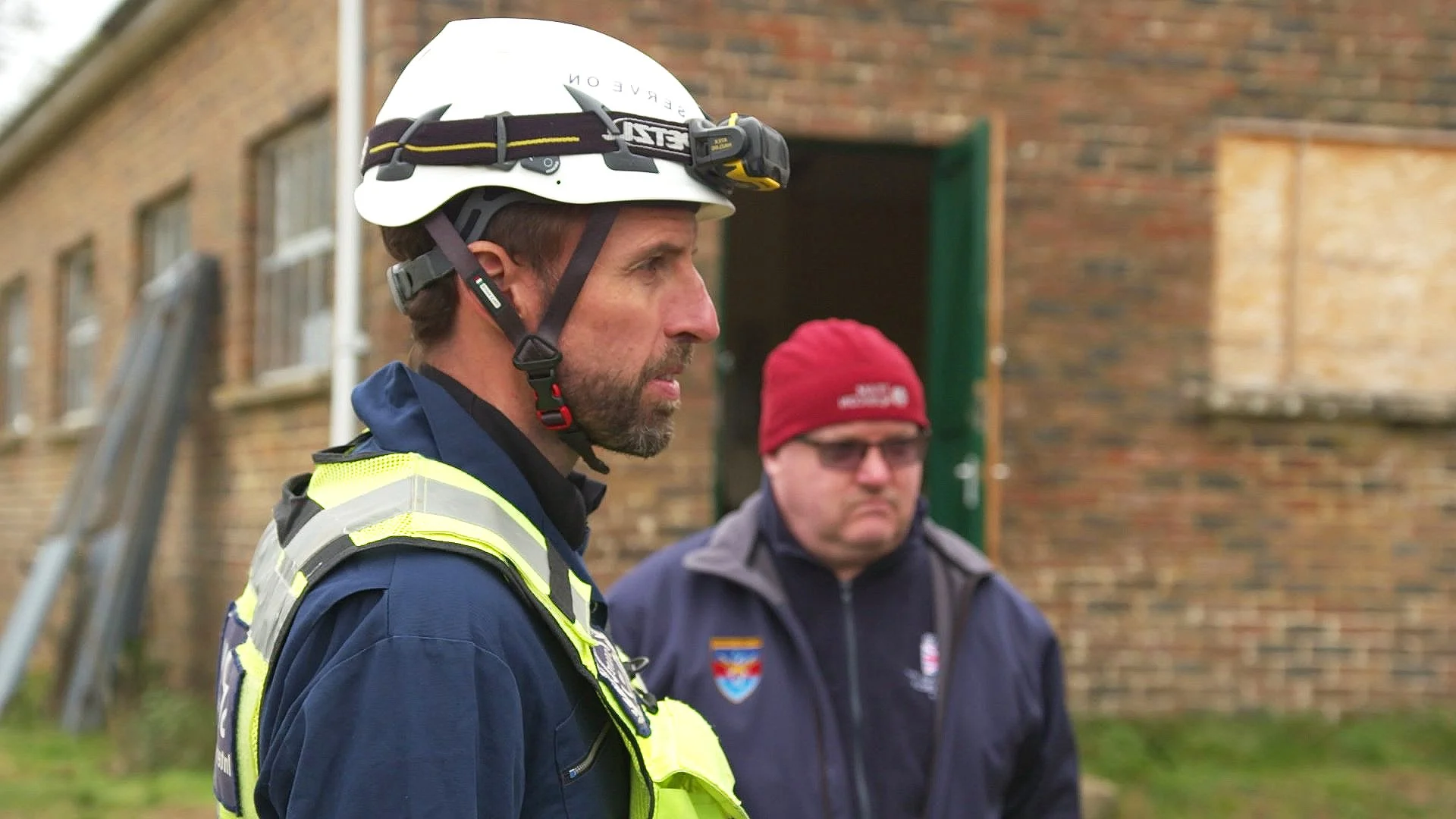 Exclusive access for BBC News hearing from the England football manager about how he is broadening his coaching knowledge as he role-plays a disaster response scenario.